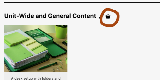 • Next to every resource, activity, and section title in your course, you’ll see a small basket (shopping cart) icon.