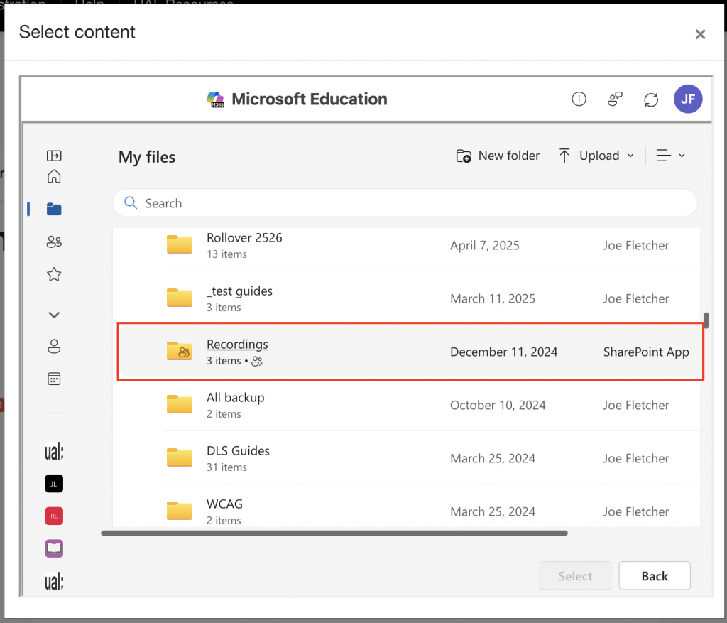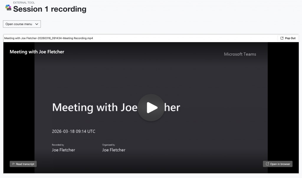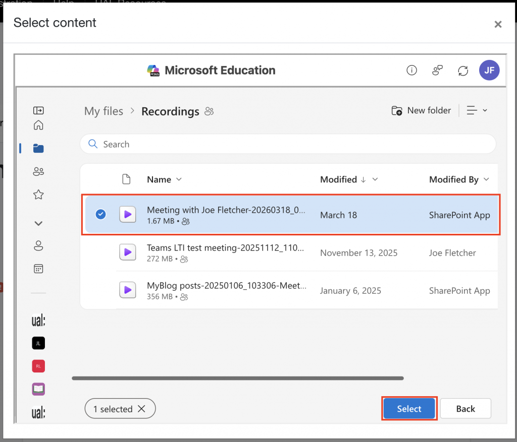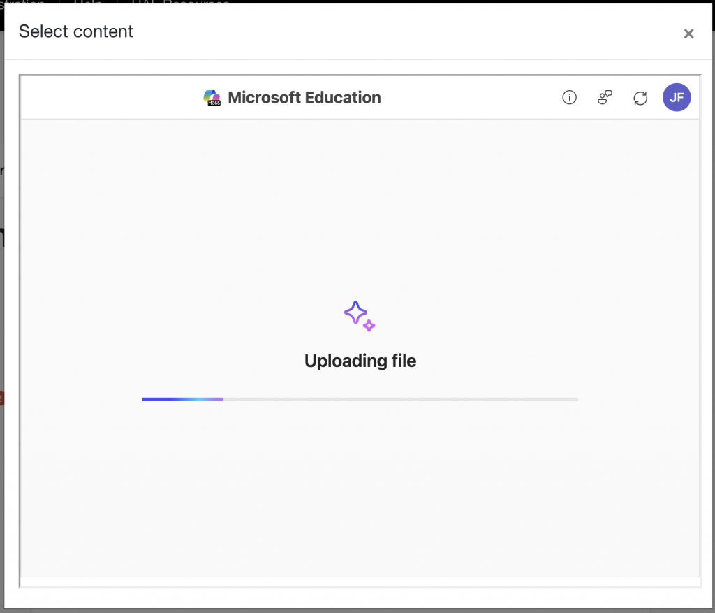 The file will upload to the course Sharepoint site. Once complete you’ll be returned to the Moodle activity.